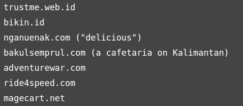 According to Cyberthreat.id the following dozen shops were infected with the GetBilling web skimmer: