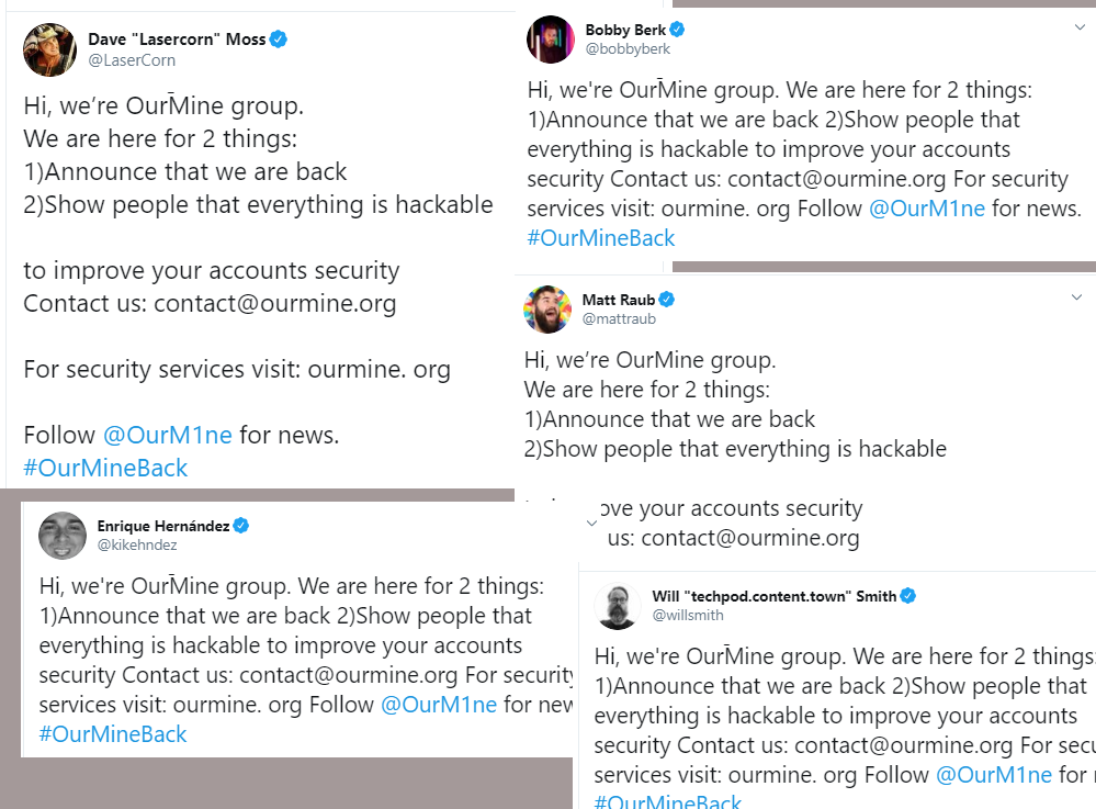 It looks like the OurMine crew is back and they're on a hacking spree, taking brief control of the social media accounts of high-profile individuals.