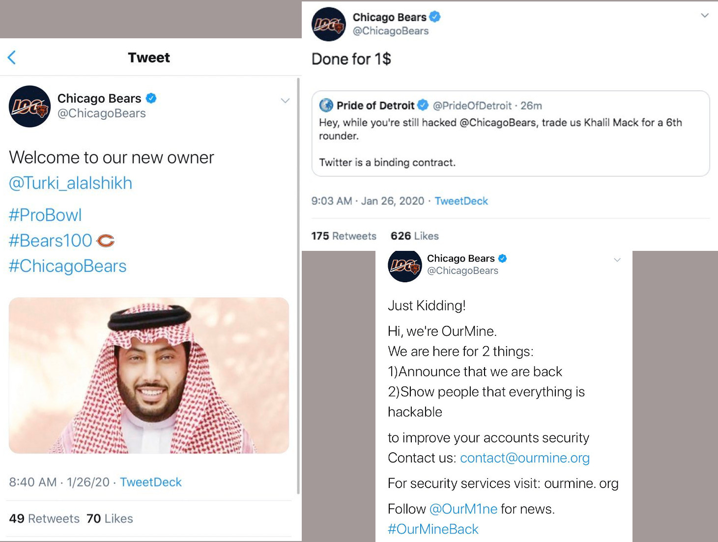 The day before, the hackers accessed the Twitter account of Chicago Bears publishing a message for all 1.8 million followers to see: the team has a new owner and he paid $1 (yes, one USD) to get it.