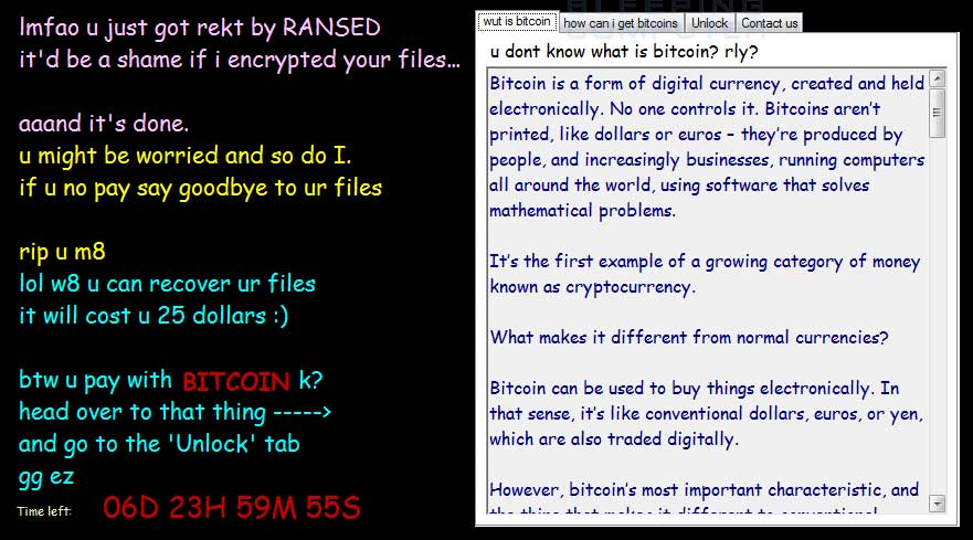 What kinds of ridiculous names and wallpapers are devs giving to their ransomware?! Really funny and full of crap and a whole load of grammatical error. Jeez!